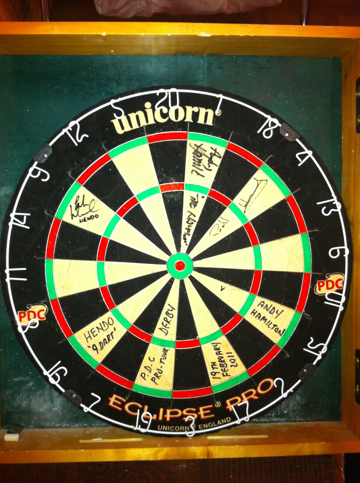 I also unwrapped the duet of darts boards that had been shipped over to me by the very kind Steve, and hung one of them up on my wall - the 9-darter board of John Henderson, now signed by him and his opponent Andy Hamilton, together with PDC director Rod Harrington, something I shall treasure for a long long time.